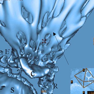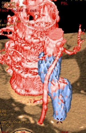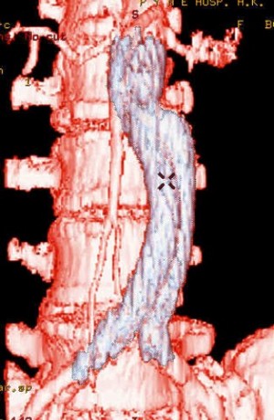 Virtual reality: Posterior surface of bifurcated aortic stent graft in-situ