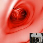 Virtual bronchoscopy: extrinsic narrowing in left side of mid-trachea